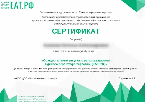 АНОО ДПО «Высшая школа закупок» является официальным представителем ЕАТ.РФ